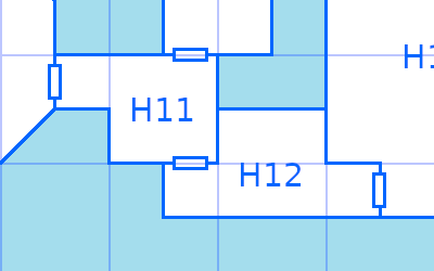 A Carrion Crawler (B32) is scuttling around this otherwise empty room. The secret door to E2 is obvious and easy to open from this direction. To the south, the ceiling is dramatically low - four feet only - but at the entrance to H15, drops four feet at the junction leading to H4 and H5.