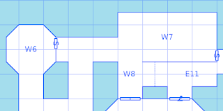 One can see into, but not access, E11 from this space through a wall of iron bars. There is a touch-plate near the bars - a character inspecting them or interacting with them may mistakenly step on it - which electrifies them: any character touching the bars at the time of the trigger suffers 1d8 points of damage.