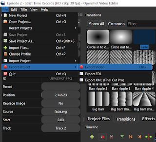 Additionally, I use (presently, at least) the Anchor platform to host and to record while on the road, afterward downloading segments from the Anchor web site and using Audacity to introduce sound effects, equalize the volume, and tie the segments together: exporting the final product as a single MP3 file. Again, no attachment to to software - it was what my friends were using and (again) free: so I ran with it. The reason I bring it up - part of my process is to produce the audio first: and from there, having the file, I can load that directly into the OpenShot project rather than using OpenShot, itself, to edit or produce the recording.